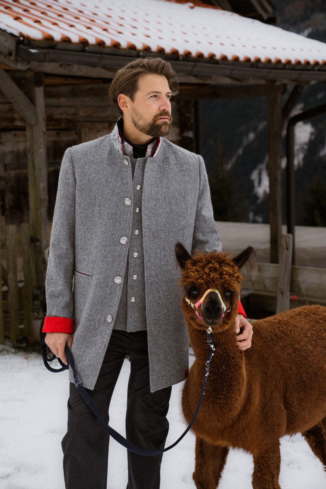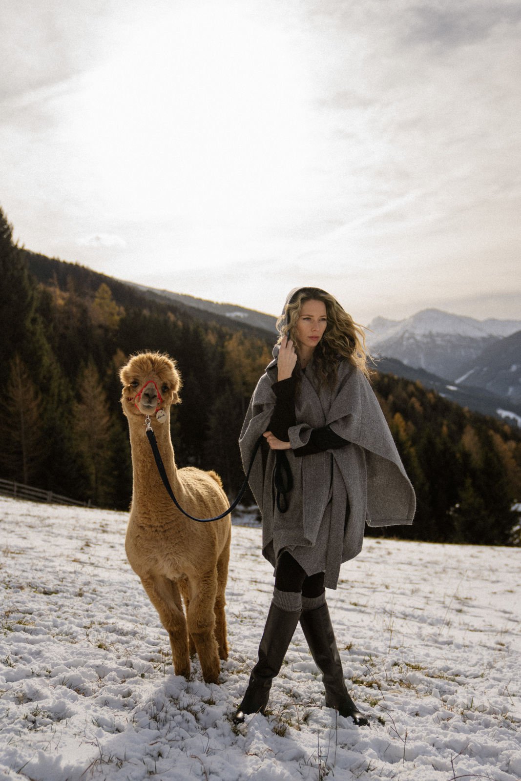 Mit unserer ALPAKA-KOLLEKTION gehen wir einen Schritt weiter: Vom Tier bis zum fertigen Kleidungsstück – jeder Arbeitsschritt findet in der unmittelbaren Region statt. Von der artgerechten Haltung der Alpakas bis zum Waschen der Wolle, vom Weben des Stoffes bis zum finalen Produkt – alles ist zu 100 % nachvollziehbar und nachhaltig gestaltet. Diese Transparenz ist für uns essenziell, denn nur durch Wertschätzung gegenüber Mensch, Tier und Umwelt können wir Mode mit Verantwortung schaffen.